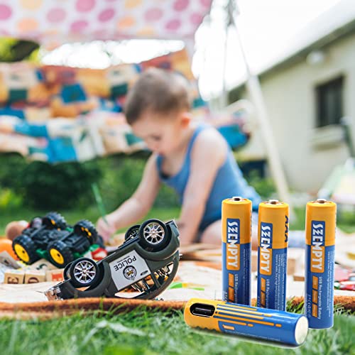 SZEMPTY Batterie ricaricabili al litio AAA, 1,5 V, USB, agli ioni di litio, 750 mWh con cavo di ricarica di tipo C, ricarica rapida in 1 ore, confezione da 4