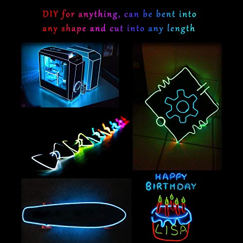 SZILBZ 5 x 1 m Resistente all'acqua neon incandescente effetto stroboscopico elettroluminescente Wire, per Party Halloween,Feste,DIY,Viola, Rosso, Verde, Blu, Rosa