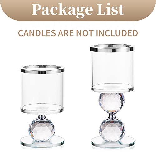 Sziqiqi Portacandele a Colonna in Cristallo, Set di 2 Candelieri in Vetro Trasparente, Candelabri Centro Tavola Moderno per Soggiorno Matrimonio Porta Candele per Decorazione Natalizia, Argento