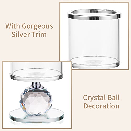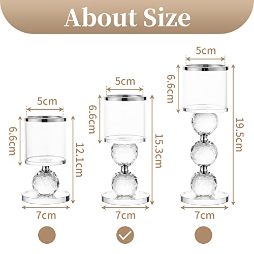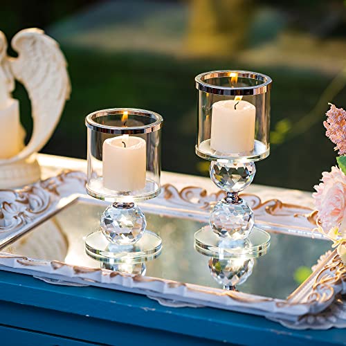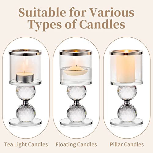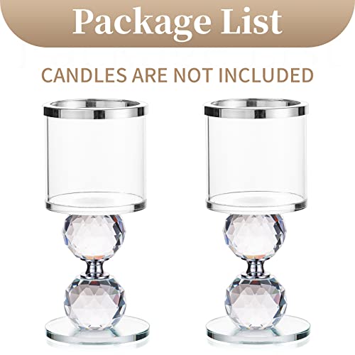 Sziqiqi Portacandele a Colonna in Cristallo, Set di 2 Candelieri in Vetro Trasparente, Candelabri Centro Tavola Moderno per Soggiorno Matrimonio Porta Candele per Decorazione Natalizia, Argento