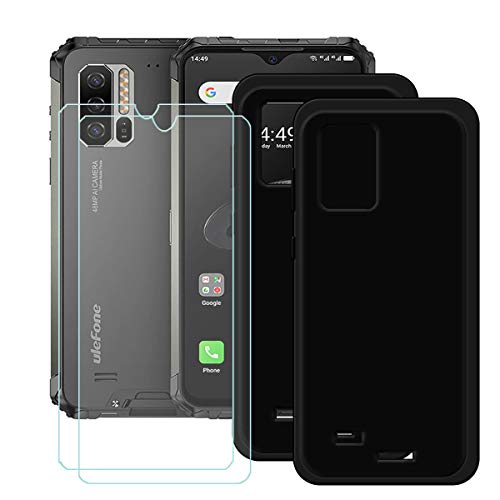 [2 Pack] Pellicola Protettive Trasparente in Vetro Temperato Progettato Esclusivamente + 2 x Cover di alta qualità Nero TPU Morbida Silicone Custodie per Ulefone Armor 7E (6,3 pollici)