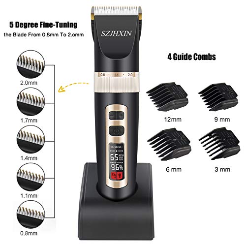 SZJHXIN Tagliacapelli Uomo Professionale, Senza fili Macchinetta Regolabarba ricaricabile con Ampio display LCD e 4 pettini regolabili, Elettrica Tagliatrice, 250 Minuti di Autonomia (Nero)