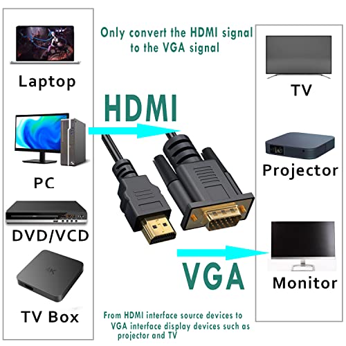 【Cavo adattatore da HDMI a VGA】Il chip IC avanzato integrato converte il segnale digitale HDMI in segnale analogico VGA, nessun driver da installare, pronto all'uso. non è un convertitore bidirezionale e non può trasmettere segnali da vga a hdmi.