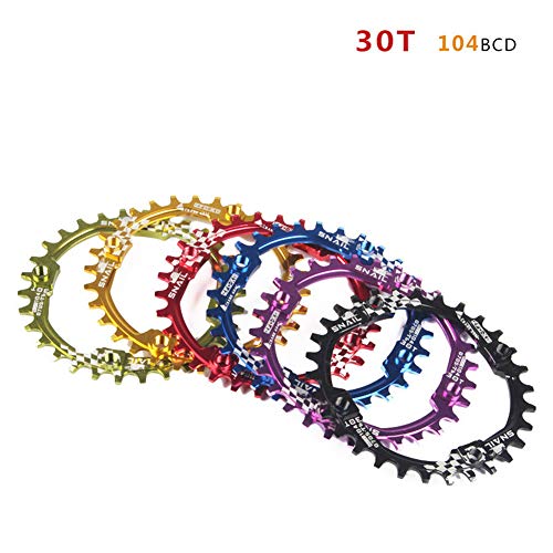 SZMYLED 30T Bike Chainring 104bcd Mountain Bike Catena anello stretto largo MTB Singola Velocità Bicicletta Chainwheel Colorato Bike Bulloni 30T rosso