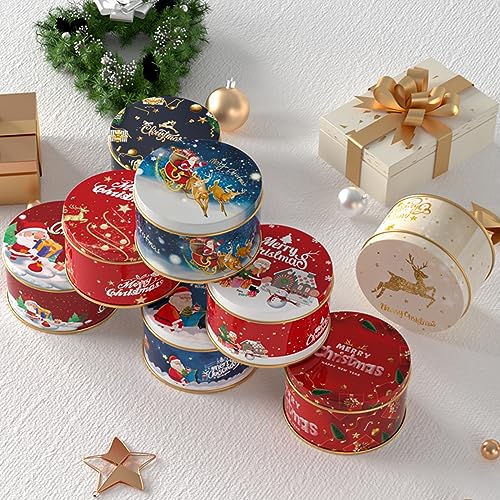 SZQIUNUBI Scatola di Latta Natalizie 8 Pezzi Scatole di Latta Natalizie Assortite Latta Vuota di Latta di Natale Scatole di Latta Natalizie per L'Imballaggio Delle Caramelle Natalizie