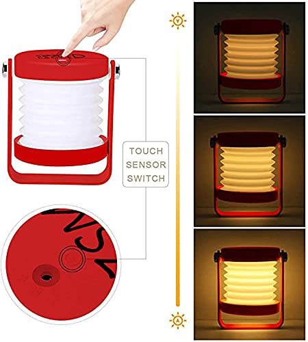SZSMS, lampada da comodino, luce notturna, stile vintage, dimmerabile, pieghevole, portatile, per camera da letto, soggiorno, campeggio