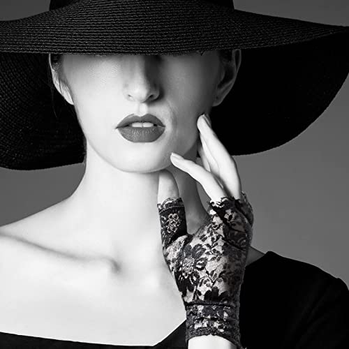 Dettagli della confezione: Riceverai due paia di guanti corti in pizzo a mezza dita, ogni paio è di circa 17 x 8,2 cm, il motivo all'uncinetto sulla superficie è molto misterioso, aggiungendo un fascino diverso a te. Quantità sufficiente e stile classico per soddisfare le vostre varie esigenze di usura del prodotto.