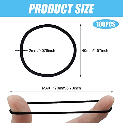 【Quantità】 Riceverai 100 elastici per capelli neri, la quantità può soddisfare il tuo uso quotidiano e le tue esigenze di ricambio. Lo spessore dell'anello per capelli è di circa 1,4 mm e il diametro è di circa 4 cm.