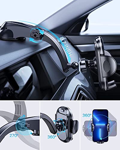 【Super Aspirazione, Stabile e Solida】 Portacellulare 2-in-1 regolabile per parabrezza per un posizionamento flessibile. Cruscotto, parabrezza e scrivania, tutto è immacolato. Il supporto per telefono per camion con ventose in gel super appiccicose può aderire facilmente e saldamente a qualsiasi superficie piana. Il supporto per telefono veicolare sul cruscotto assicura che il dispositivo rimanga saldamente in posizione anche su strade sconnesse e curve strette.