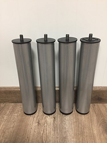 Szzz-4 gambe di somier-base tappezzato, diritti e cilindrici. 25,5 cm di altezza x 5 cm di diametro. Filettatura Metrica 10 mm. colore grigio metallizzato.