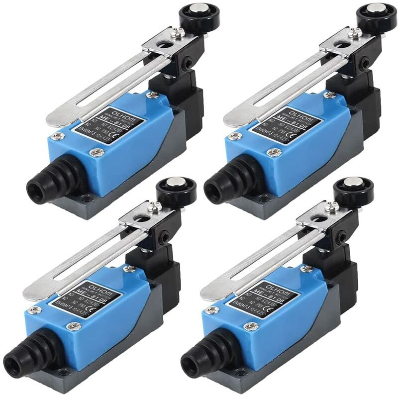 Tipo di attuatore: braccio a leva rotante regolabile con rullo. Azione attuatore: momentanea. Vantaggio: Meccanismo a doppia lamella che garantisce una maggiore durata meccanica. Materiale: lega di zinco e plastica rinforzata. Caratteristiche: Finecorsa a doppio circuito. Modello: ME-8108. Azionamento momentaneo dell'attuatore. Tipo di attuatore a leva regolabile girevole con rotella. Configurazione contatto NC + NO. Classificazione IP: IP65. Tensione di esercizio nominale: AC380V, DC220 Condensatore di controllo nominale: AC100VA DC30W.