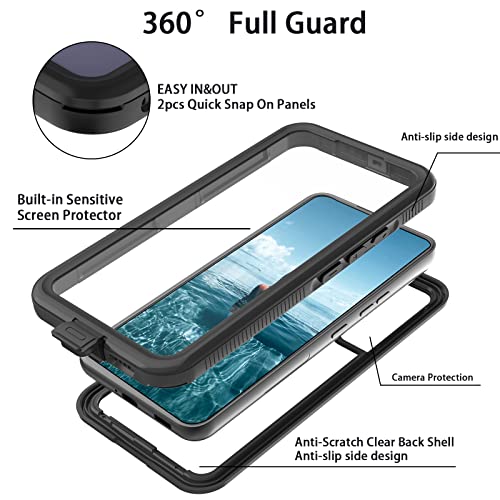 T-Bee Custodia per Samsung Galaxy S22 5G, impermeabile, antiurto, con protezione per lo schermo integrata, protezione a 360 gradi, custodia trasparente per Samsung S22, colore nero