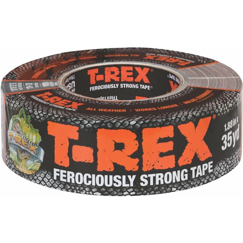 Larghezza: 48 mm Lunghezza: 32 m Colore: Grigio Grafite T-Rex Tape is a ferociously-strong, all-weather tape that’s designed to have two times the bite, three times the staying power and four times the holding power of standard tapes. At 17 mils thick (double the thickness of ordinary tapes) this tape is extremely strong, with a thick, aggressive adhesive that can stick to rough, dirtier surfaces. A UV-resistant layer is built into the tough skin of the tape. This layer blocks the sun’s harsh UV rays from breaking through the outer skin of the tape and weakening the adhesive, giving T-Rex Tape the staying power to last through all types of weather. T-Rex Tape is for projects that need intense holding power. It’s ideal for taping up tarps and rough fabrics, bundling large or heavy materials and making long lasting repairs that ordinary tapes just can’t handle. This tape is made for home-owning DIYers and pro-contractors, making it perfect for any project, big or