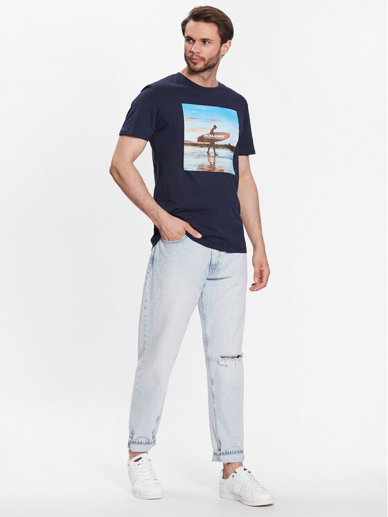 T-shirt 12221007 Blu scuro Regular Fit