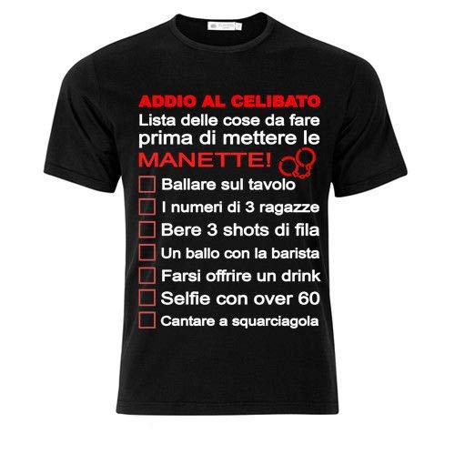 T-Shirt Uomo Addio al Celibato: Lista delle Cose da Fare Prima di Mettere Le Manette! Personalizzabile con Le tue Frasi! Idea Regalo Divertente per Lo Sposo! Nera! (XXL)
