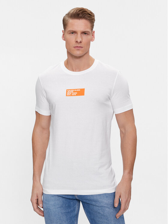 Calvin Klein Jeans T-shirt Small Center Box J30J324027 Bianco Regular Fit