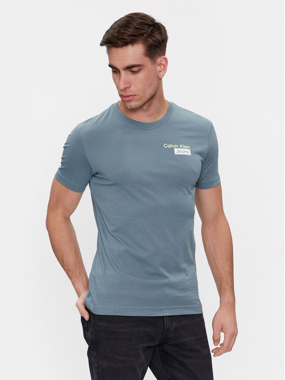 Calvin Klein Jeans T-shirt Stacked Box Tee J30J324647 Blu Slim Fit