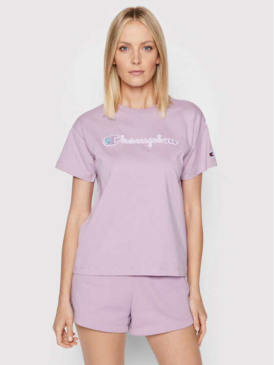 Champion T-shirt Big Script Logo 115351 Viola Boxy Fit