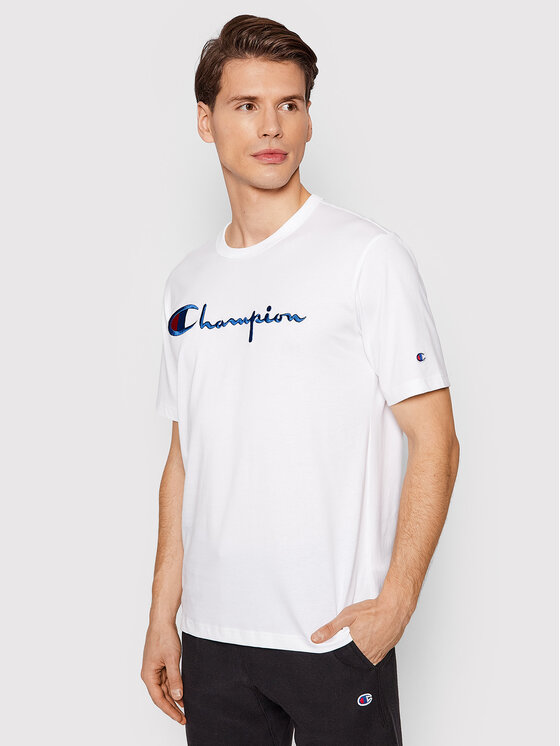 Champion T-shirt Big Script Logo 216547 Bianco Regular Fit