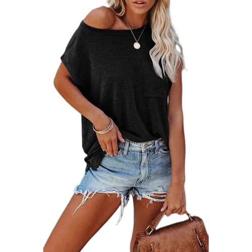 T-shirt da donna a maniche corte T-shirt basic tinta unita con tasca T-shirt casual da donna T-shirt a maniche corte con spacco laterale shirt casual tinta unita T-shirt larghe T-shirt basic semplici