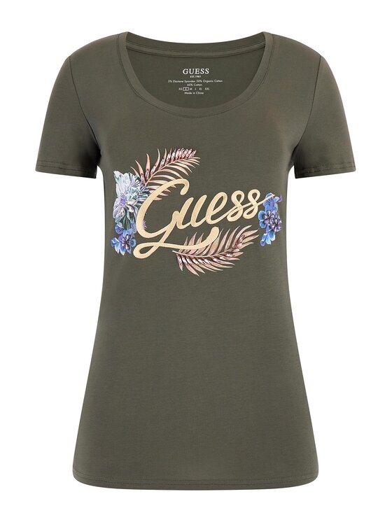 T-shirt Embellish Logo W3GI40 J1314 Verde Slim Fit