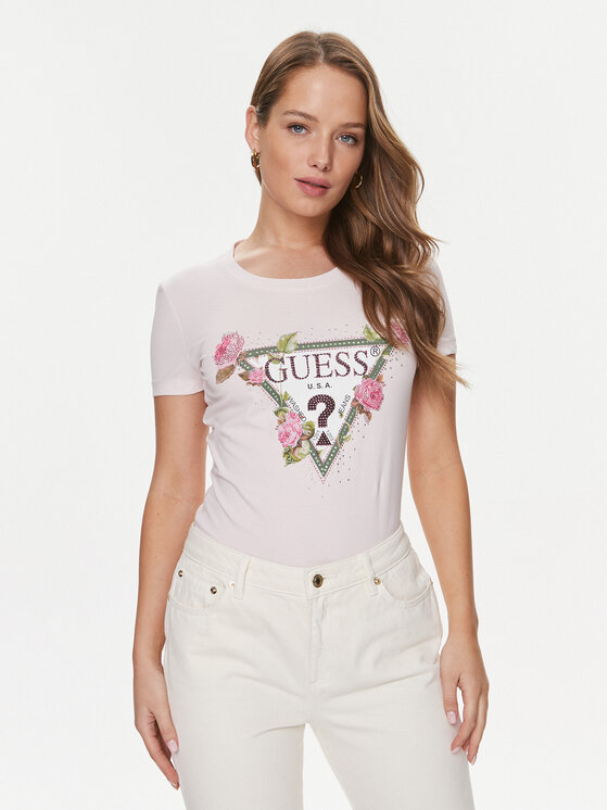 Guess T-shirt Floral Triangle W4RI28 J1314 Rosa Slim Fit