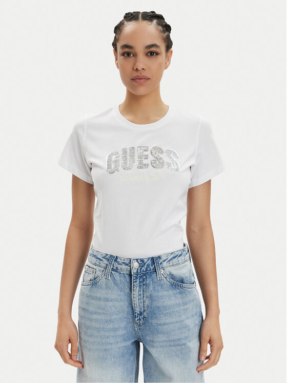 Guess T-shirt Ss Rn Sequins Logo T W4GI31 I3Z14 Bianco Regular Fit