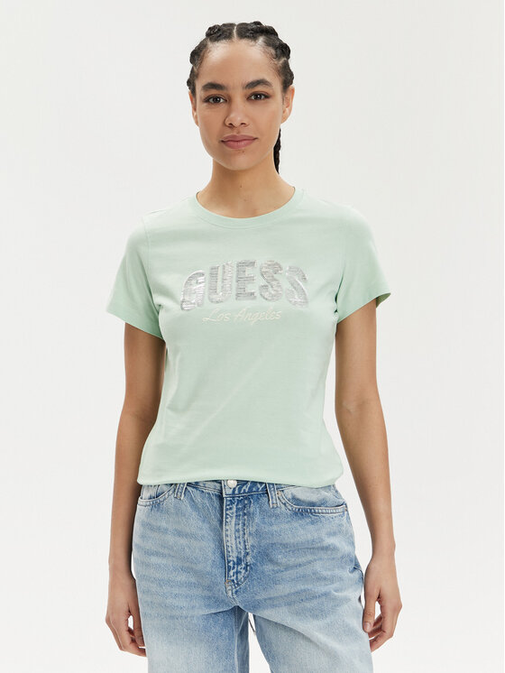 Guess T-shirt Ss Rn Sequins Logo T W4GI31 I3Z14 Verde Regular Fit