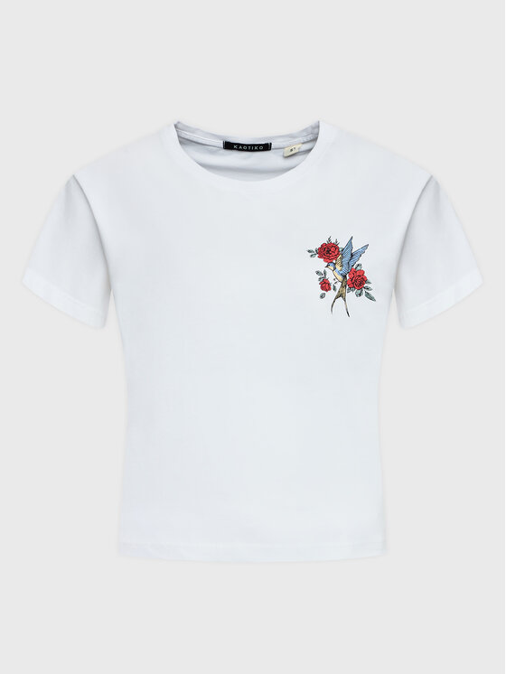 Kaotiko T-shirt Washed Bird AL011-01-M002 Bianco Regular Fit