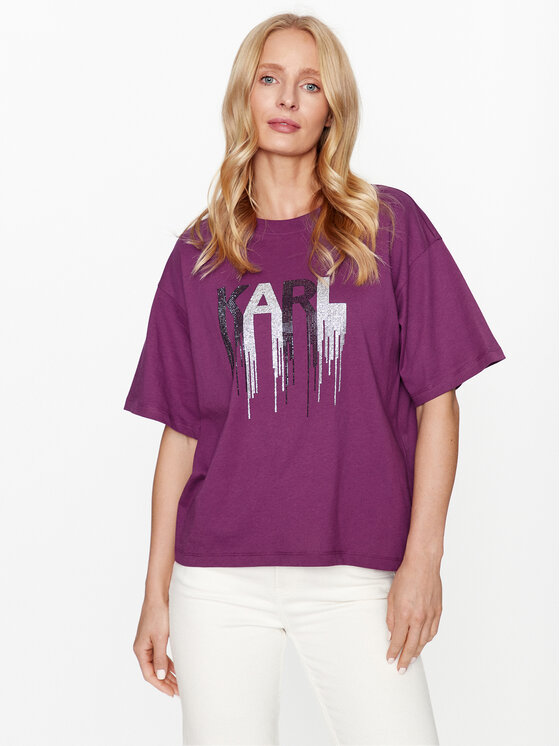 KARL LAGERFELD T-shirt Rhinestone 236W1714 Rosa Regular Fit