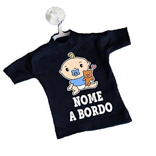 Mini T-shirt magliettina auto macchina bimbo bimba a bordo personalizzata nome bebè ciuccio orsetto blu scuro