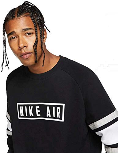 Nike M NSW Air Crew FLC T-Shirt A Manica Lunga, Uomo, Black/White/Grey Heather/White, 2XL