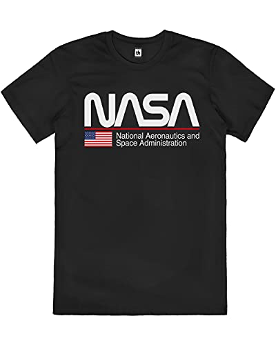 T-Shirt NASA Official Approved Logo Black 100% Cotone (XXL, Nero)