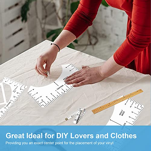Regola di allineamento della maglietta: questa regola di allineamento della maglietta è realizzata in PVC resistente di alta qualità. È trasparente, inciso con precisione al laser, consente di vedere chiaramente numeri e marcatori per un uso duraturo. Non preoccuparti mai della rottura del righello in PVC!