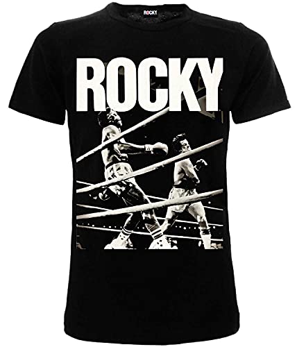 T-Shirt Rocky Originale Ufficiale Balboa vs Apollo Sylvester Stallone Nera Uomo Maglia Maglietta (S)