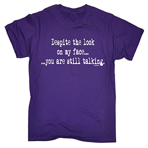 123T - T-shirt da uomo, con scritta “Despite the look on my face you are still talking”, stile largo, stile stampa anticata