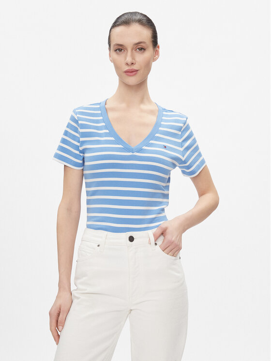 Tommy Hilfiger T-shirt New Slim Cody V-Neck Ss WW0WW40584 Blu Slim Fit