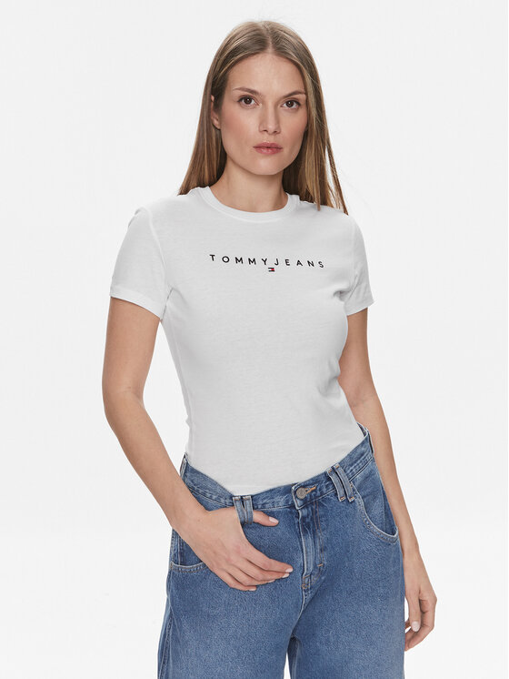Tommy Jeans T-shirt Linear DW0DW17361 Bianco Slim Fit