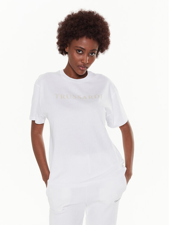 Trussardi T-shirt Lettering Print 56T00565 Bianco Regular Fit