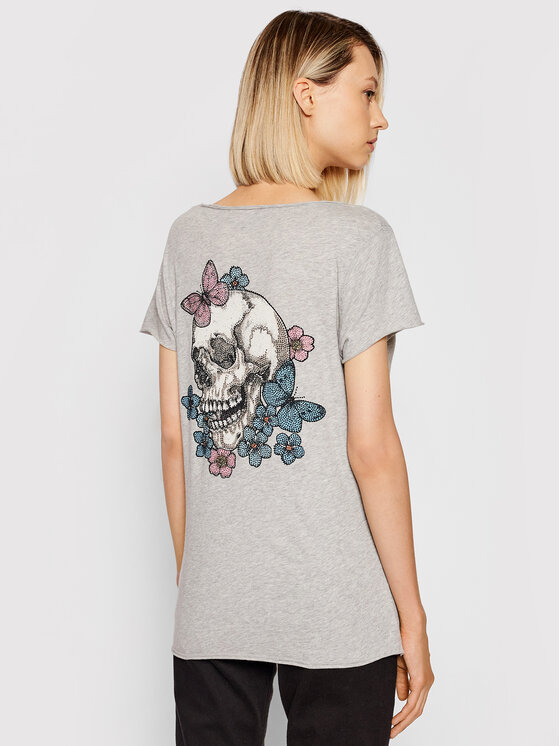 T-shirt Tunisien Mc Skull Strass WKTS7416F Grigio Regular Fit