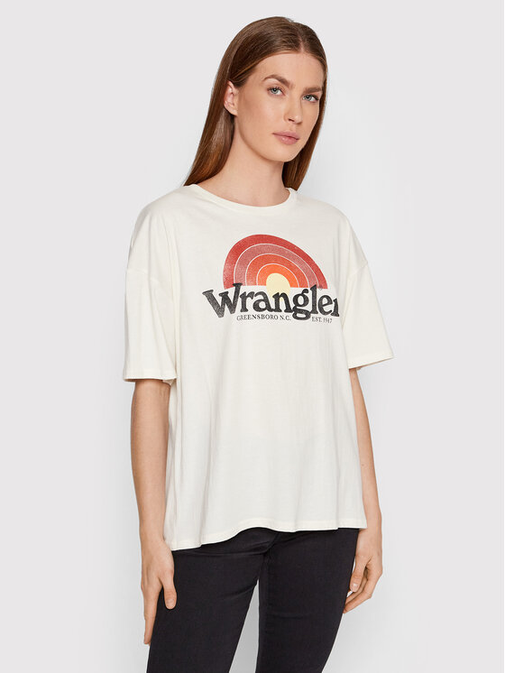 Wrangler T-shirt Girlfriend W7R9GHC11 Bianco Regular Fit