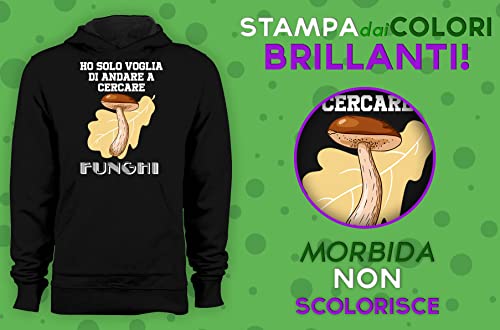 T-shirteria Felpa con Cappuccio Divertente Uomo - Ho Solo Voglia di Andare a Cercare Funghi - Felpa Funghi Divertente - Felpe Funghi Porcini - Frasi Divertenti Funghi