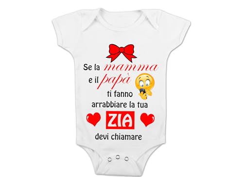 T-shirteria Body Neonato Divertente Maschietto Se la Mamma e il Papà ti fanno arrabbiare la tua Zia devi chiamare Zia con Scritta Bimbo