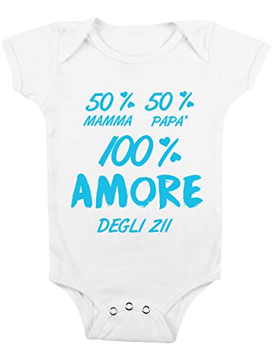 T-shirteria Body Neonato Divertenti Maschietto 50% Mamma 50% Papà 100% amore degli Zii per Neonati Scritta Body