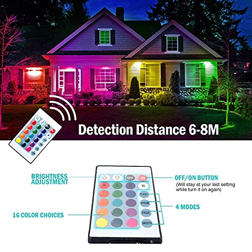 T-SUN 100W Faretto LED RGB 2 Pack Faretto LED da Esterno, IP66 Impermeabile, Multi Colore Dimmerabile, Fari LED con Telecomando per Giardino Interno Esterno Partito