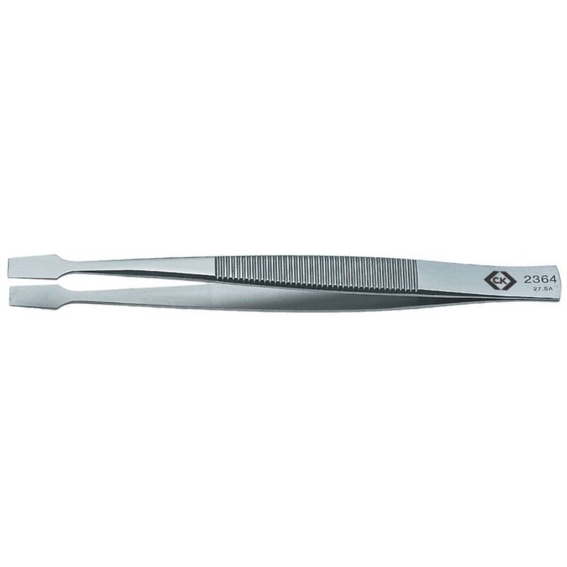 Dettagli tecnici Dimensione del prodotto, lunghezza 105 mm Forma delle punte (pinzette) Spatola Materiale Acciaio inox Peso 14 g Tipo prodotto Pinzetta a croce Lunghezza totale: 105mm Pinzette C.K a punte piatte 2364 - 105 mm Impugnatura in acciaio inossidabile di qualità - resistente agli acidi e alla corrosione. Congiunzione a saldatura di precisione per un funzionamento coerente e ripetitivo. Antimagnetiche per prevenire danni elettromagnetici. Punte piatte squadrate a scalpello. Incluso nella consegna null Requisiti di sistema null