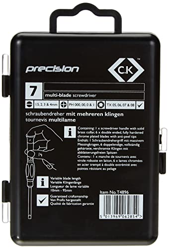 C.K T4896 Cacciaviti di precisione, a taglio/a croce (Phillips)/Torx, set da 7 pezzi