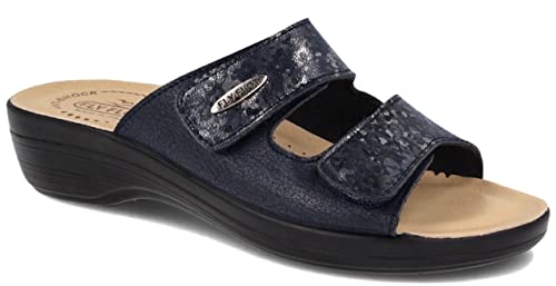 Fly Flot T5B18 VE Blu Ciabatte Pantofole ESTIVE Made in Italy Due Strappi Regolabili, Sottopiede Vera Pelle ANATOMICO, ANTISHOCK, AUTOMODELLANTE, Antiscivolo, Zeppa 4,5 CM