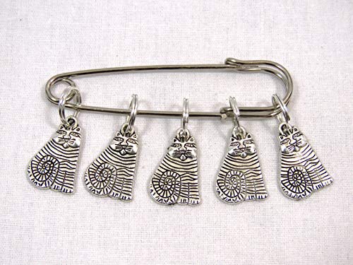 Tabby Cats - Silver Knitting Stitch Markers by Charmed Knitting