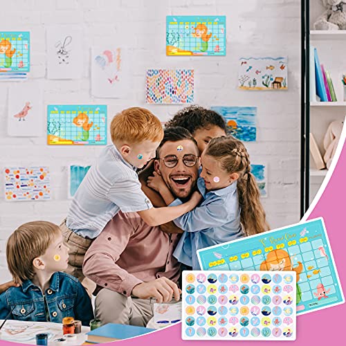 12 Tabella Premi con Adesivi Include 6 Grafici Comportamento, 6 Fogli/ 360 Pezzi Grafico delle Ricompense Adesivi Riutilizzabili per Formazione Comportamento Bambini (Sirena)